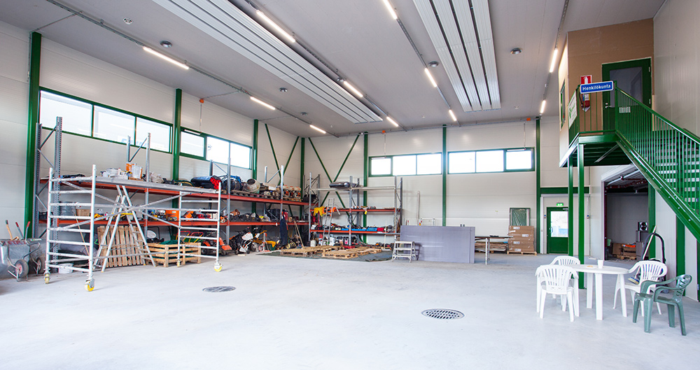- todella korkeat tilat 6 m eli hyvä rakentaa kunnon hyllystö